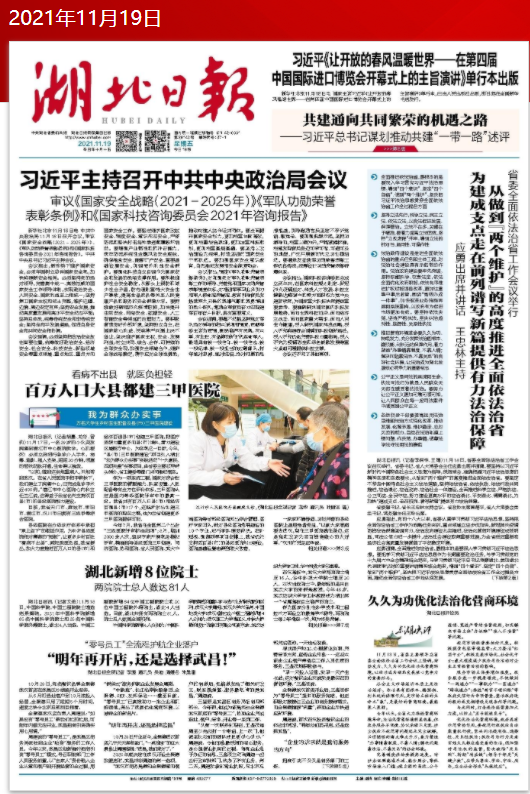 媒体链接:http://epaper.hubeidaily.net/pc/content/202111/19/content_138748.html