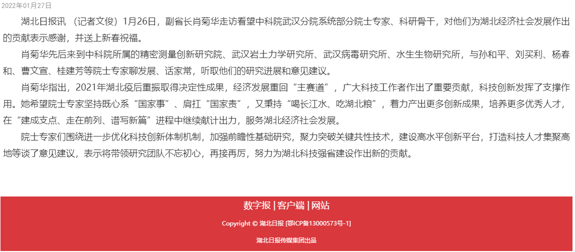 媒体链接:http://epaper.hubeidaily.net/pad/content/202201/27/content_152038.html