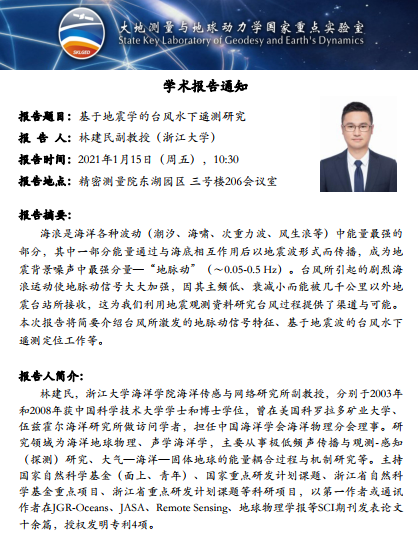 2021年1月15日瓦力游戏官方大地测量与地球动力学国家重点实验室学术预告