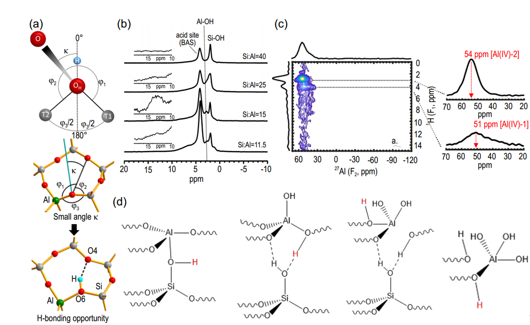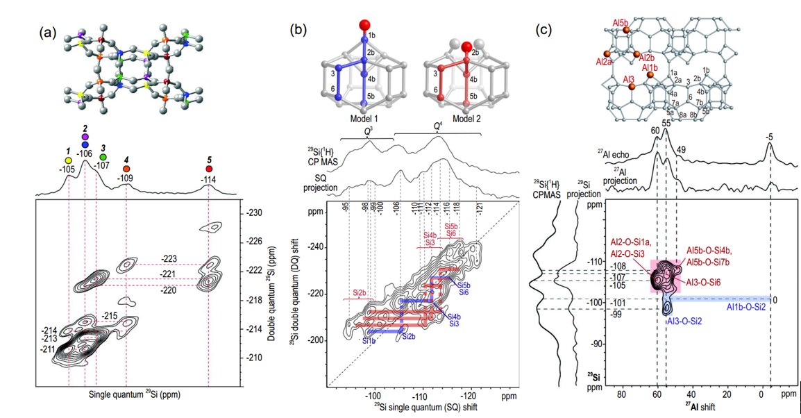 分子筛是一类具有规整亚纳米孔道结构的无机晶体材料,广泛应用于催化、离子交换、吸附分离等诸多领域。分子筛作为催化剂在石油炼制以及石油化工生产中发挥着重要作用。对分子筛催化剂微观结构的认识是理解构-效关系,进而进行催化性能优化的基础。固体核磁共振技术能够给予原子级别的结构与动力学信息,是研究分子筛的重要工具。