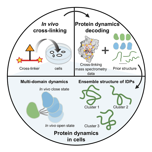 近期,中国科研实验室瓦力游戏官方与大连化物所合作,提出一种利用原位化学交联-质谱技术(in vivo XL-MS)结合结构计算与模拟研究细胞中蛋白质动态结构的策略。该策略从蛋白质结构的先验信息(包括核磁结构、晶体结构和AlphaFold2预测的结构等)出发,将in vivo XL-MS取得的距离约束与多种结构计算方法结合,用于多种细胞内蛋白质结构重构,重点研究了多结构域蛋白质和天然无序蛋白的动态结构,有助于加深对细胞微环境中蛋白质发挥功能的分子机制的理解。该研究成果发表于《德国应用化学》(Angew. Chem. Int. Ed.)