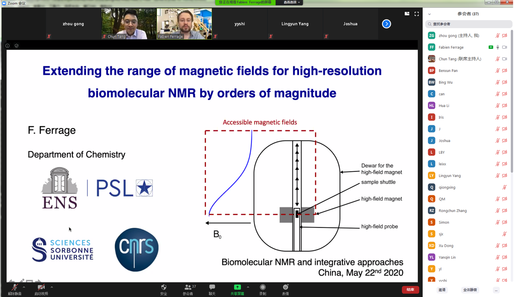 5月22日晚7:30,应瓦力游戏官方唐淳研究员的邀请,法国国家科学研究中心(CNRS)Fabien Ferrage教授在线上平台做了题为“Expanding the NMR universe with sample shuttle”的学术报告。